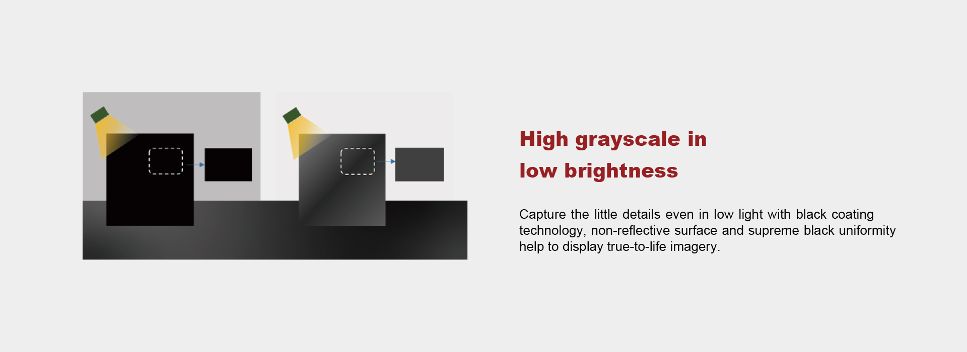 Capture the little details even in low light with black coating technology, non-reflective surface and supreme black uniformity help to display true-to-life imagery